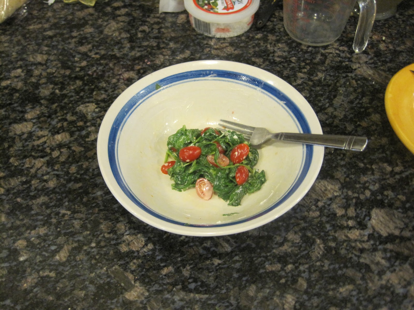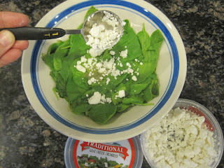 Add 2 cups (stuffed) fresh spinach into a medium sized bowl