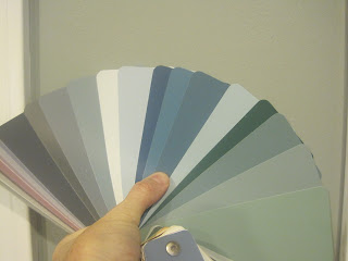 As a family, we really like the blue-grey since the rest of the house is shades of buttery yellow (except for the newly painted sun room which I did in light green). So I am thinking that maybe I would like to stay within these blue shades. Soothing, light and would remind me of a bright blue sky in the summer time! YAY!