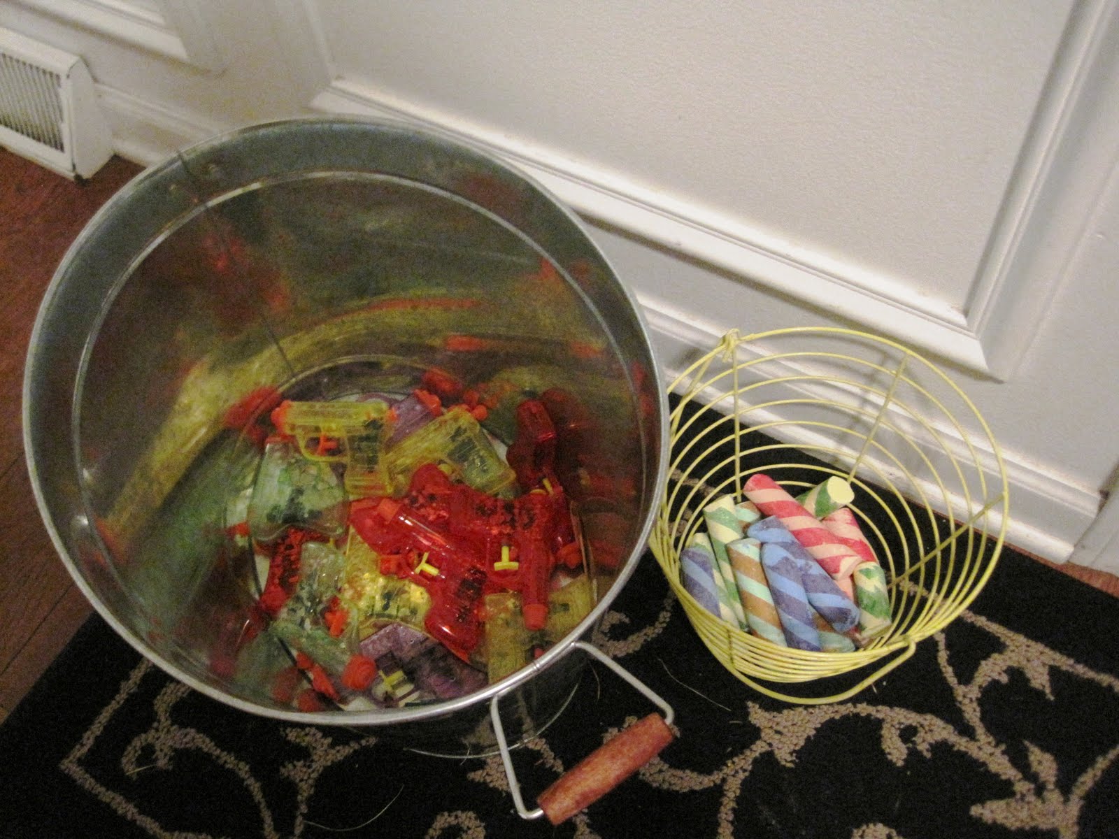 We had a sprinkler, basketball, bean bags and sidewalk chalk