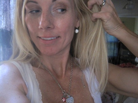 Earrings are my shiny rhinestone disco ball earrings, a gift from my daughter.
